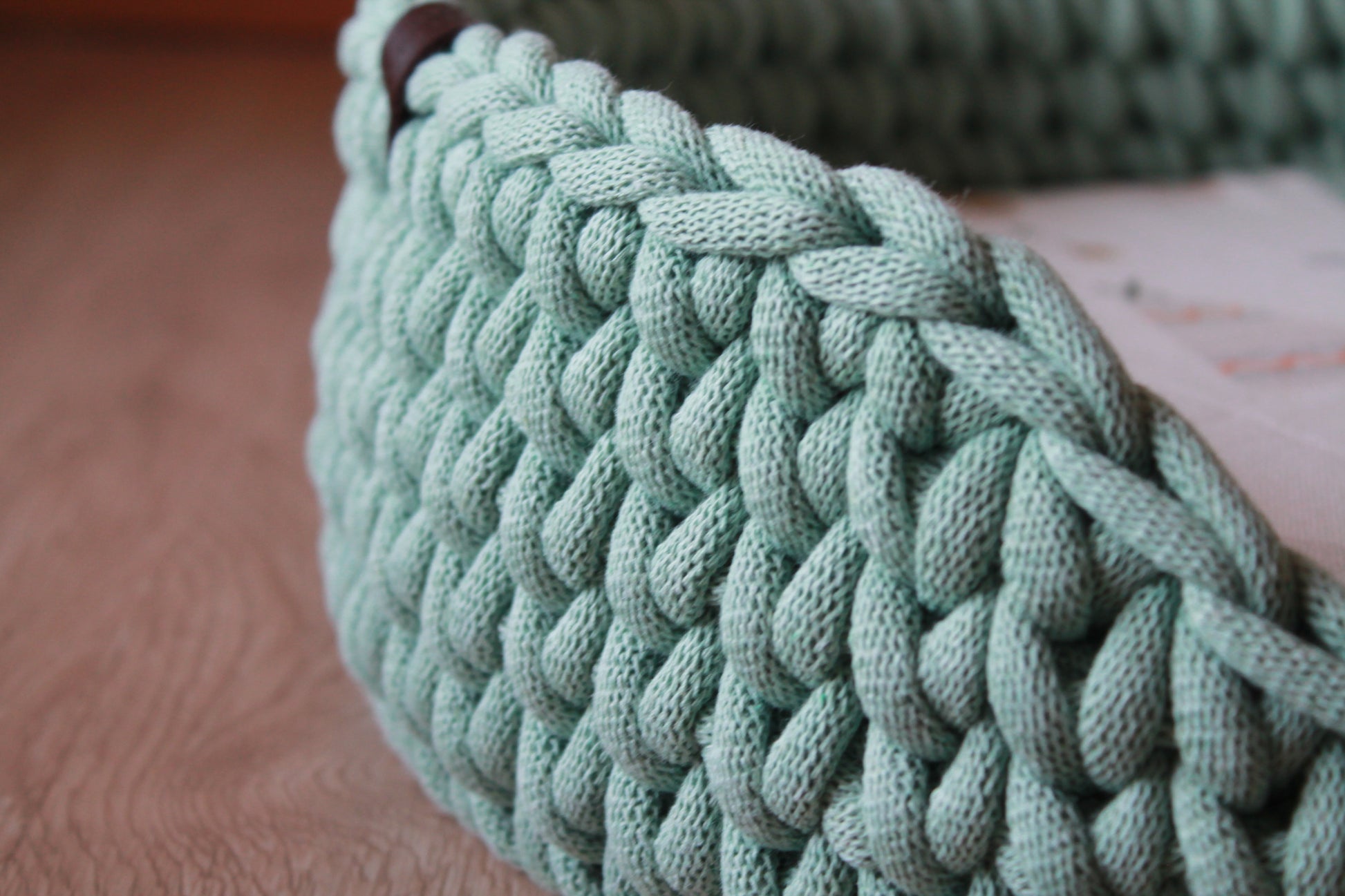 Realizzata a mano con cordino in cotone Bobbiny e base in legno, questa cuccia unisce solidità e morbidezza in un design unico.