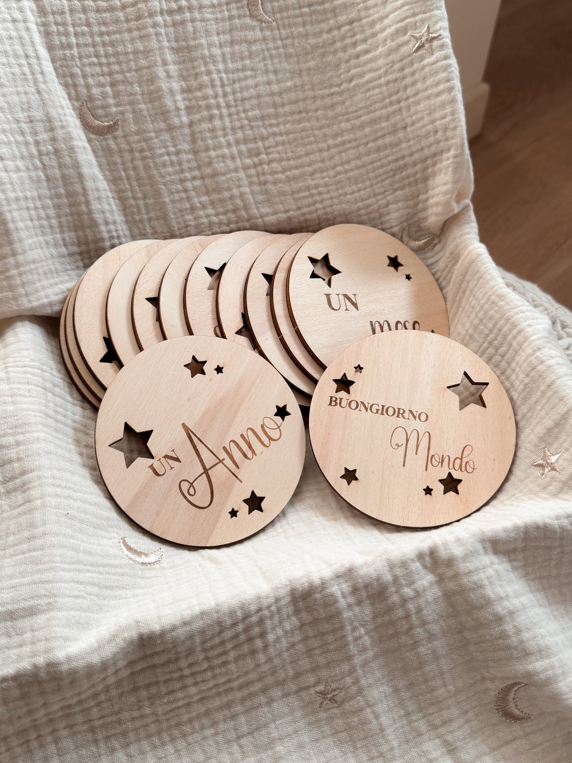 Un dolce modo per custodire i ricordi più preziosi del tuo bimbo. Le nostre milestone card in legno sono pensate per accompagnarti durante i suoi primi mesi e anni di vita, permettendoti di immortalare ogni tappa speciale con una foto unica.
