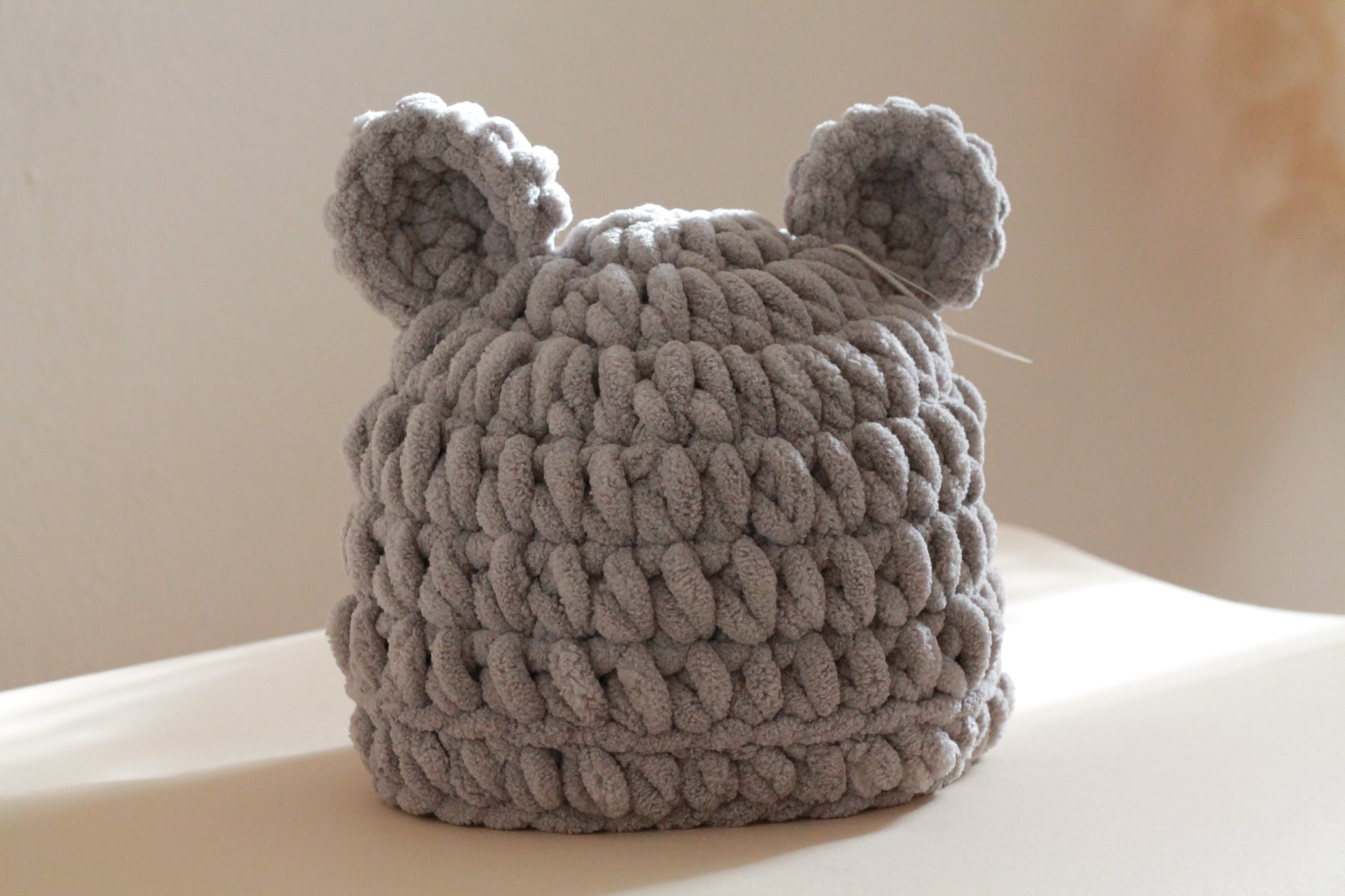 Berrettino bimb* in ciniglia color grigio taglia 6–12 mesi ❄️